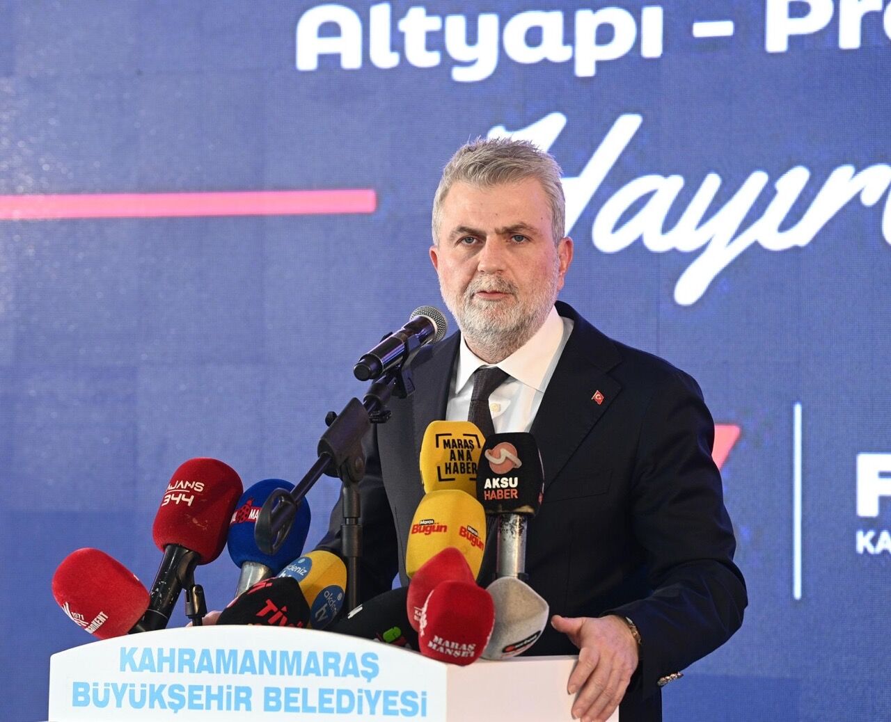 Büyükşehir Belediye Başkanı Fırat Görgel konuşmasını, “Biz ilçemizin eksiklikleri neyse ona göre yol alıyoruz. 23 ayda yaptığımız yatırım 825 Milyon TL. Hiçbir zaman popülizme kaçmadık, kaçmayız da. Biz bu şehre sevdalıyız. İlçeleriyle bir an önce şehrimizi ayağa kaldırmak istiyoruz. Bunun için de işe en baştan başlamak zorunda kaldık. Hiçbir siyasetçi altyapı çalışması yapmak istemez. Yollar kazılıyor, vatandaşın konforu düşüyor. Ama bu bizim için bir zorunluluk. Şehirlerimiz yeniden inşa edilirken temeli sağlam atmalıyız. Şehir denildiğinde, merkez denildiğinde bu yerleşim alanlarının belirli bir standardı karşılaması gerekiyor. Biz bunu sağlatmak için çalışıyoruz. İlk günden itibaren de tek derdimizin Kahramanmaraş olduğunu söylüyoruz. Biz hiçbir zaman bir parti ayrımı yapmadık, yapmayız.