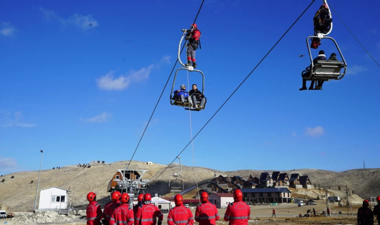 Büyükşehir Belediyesi İtfaiye Dairesi Başkanlığı’ndan tatbikata ilişkin yapılan açıklamada, “Afet ve acil durumlarda görevli personellerin becerilerini artırmak ve koordinasyonunu sağlamak için yangın, deprem ve arama kurtarma gibi farklı senaryolarla tatbikatlar gerçekleştiriyoruz. Bugün de Yedikuyular Kayak Merkezi’nde ilgili kamu kurum ve kuruluşlarının katılımıyla kurtarma tatbikatı gerçekleştirildi. Senaryo gereği telesiyejde mahsur kalan vatandaşlar ekiplerimiz tarafından kurtarıldı. Her türlü doğal afet ve acil müdahale gerektiren duruma karşı ekipman ve personel olarak hazırız. Doğal afetlere ve acil durumlara karşı personellerimizin becerilerini ve koordinasyonunu artırmak için hizmet içi eğitimlerimiz devam edecek” ifadelerine yer verildi.